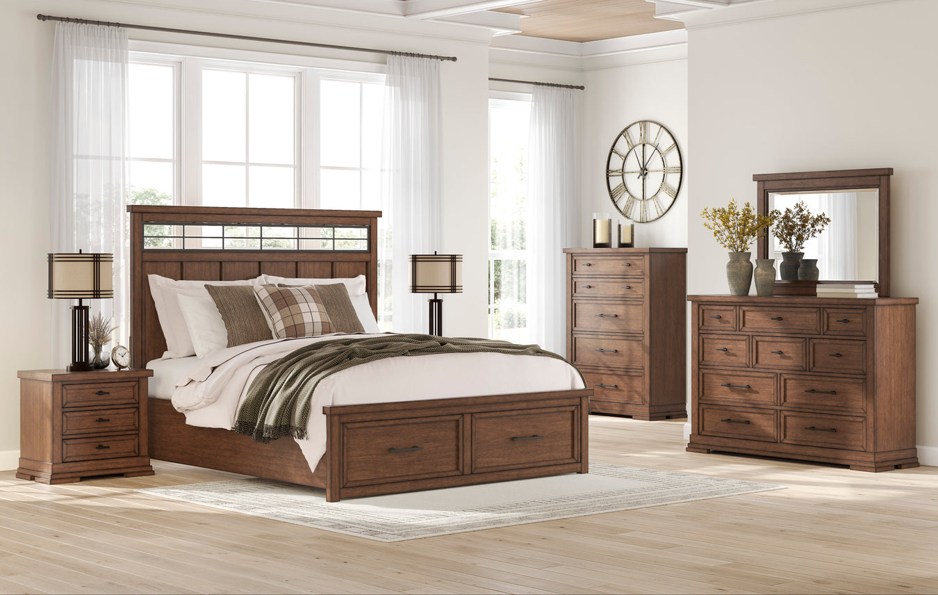 View full detailsWith its clean-lined look and modern attitude, this bedroom package is a fresh style awakening. A warm charcoal hue over replicated oak grain easil...