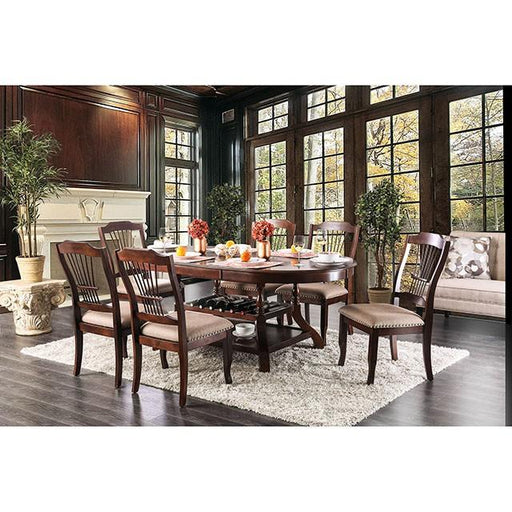 FOA EastLiberta Dark Oak/Black Dining Table, 78 (60" + 1 X 18"Leaf)L X 42"W X 30"H, 182.6lbs. Your family will enjoy this simple transitional dining piece....