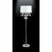 View full detailsJada White Floor Lamp, 16"DIA X 62 1/2"H, 16lbs. A brilliant white shade covers a cascading set of imported crystal droplets surrounding a metal ba...