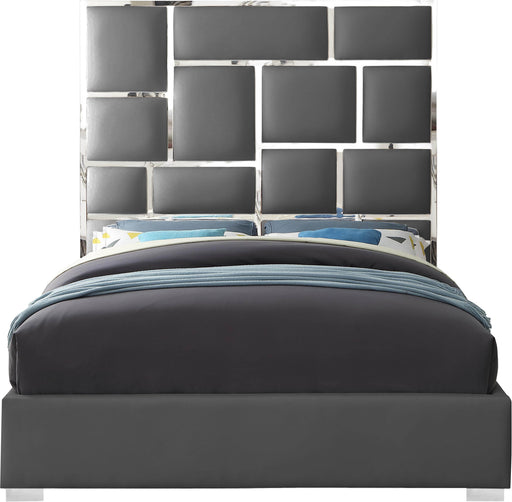 Milan Grey Faux Leather Queen Bed
