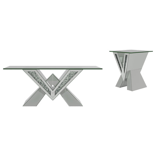 Coaster Z2 PremiumThis mirrored coffee table set brings modern luxury to any living space. Featuring a coffee table and matching end table, both pieces boast bold V-...