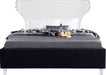 There's nothing scary about the Ghost black velvet queen size bed, with its plush cushioned and upholstered side rails and footboard. A curved transparent acrylic headboard allows you to situate it in front of a window without blocking the view, and matching acrylic legs offer a beautiful contemporary appearance. This bed has a complete set of slats included for your convenience, so you won't need to purchase a box spring.